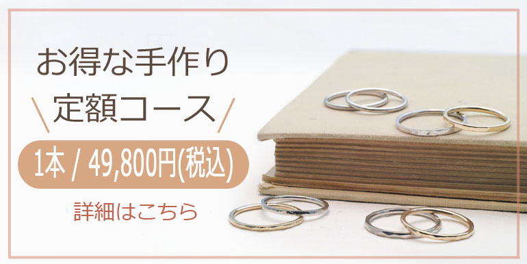 こちらのコースでは、人気のある甲丸デザインの結婚指輪を、制作したその日お持ち帰りいただけるます。