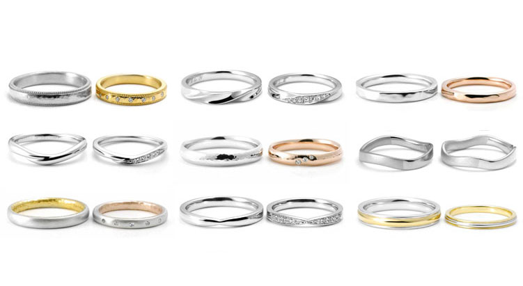 豊富なフォルム、素材、オプションの中から自由に組み合わせて、低価格でお二人だけの結婚指輪をお作りいただけます。