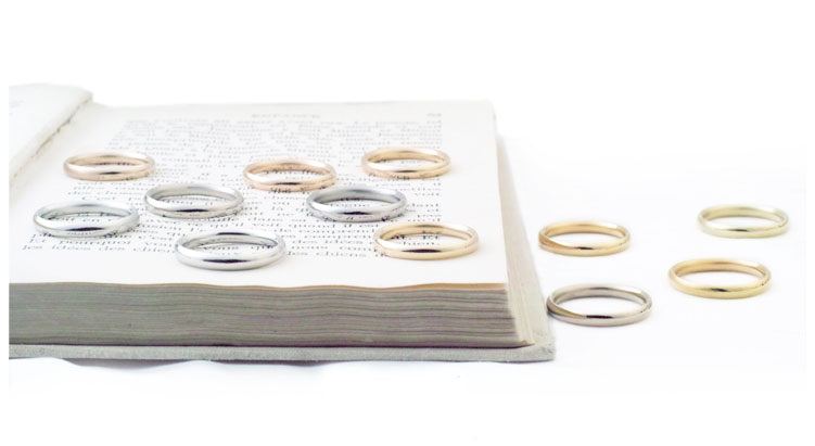 RITOEでは、デザインの幅を広げていただくために、豊富なカーラーの貴金属素材をご用意しております。シンプルでも、こだわりの詰まった結婚指輪をお作りいただけます。