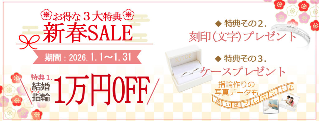 レーザー刻印と手打ち(打刻)の2種類から、お好みに合わせて文字入れいただけます。現在、指輪の内側に30文字までレーザー刻印を無料でプレゼントしています。