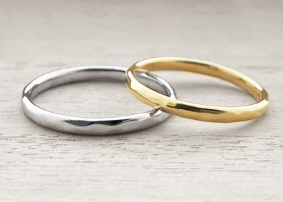 ハンマーを使って指輪の表面を叩き、味わい深い雰囲気に仕上げます。 ハンマーのサイズや、叩く際の力加減によって、仕上がりも異なります。