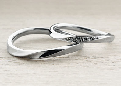 弧を描くようにカーブした姿が印象的で、婚約指輪の重ね付けした際に、フィットするのが魅力です。また、形が下に凹むことにより、指の付け根から先までの距離を長く見せくれる効果が得られるのが魅力です。また、柔らかな形が、優しい雰囲気を演出してくれます。