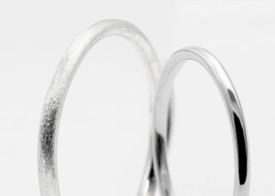 指輪の表面を綺麗にピカピカに磨き上げ、鏡のように仕上げます。結婚指輪・婚約指輪の定番仕上げとして、最も人気のある仕上げです。