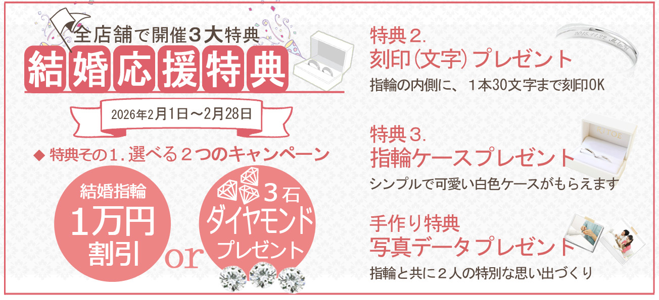 一つ目は、千葉県柏市にある当店RITOE(リトエ)柏店です。 リトエの魅力は、完全予約で店舗を貸し切って、2人だけでゆっくりと作れるリラックス空間と、高品質・低価格で様々なデザインを12種類の貴金属素材の中から選び、世界に一つだけの結婚指輪が作れる所です。 リトエでは、2人の思い出も一緒にお作りいただけるよう、制作中の風景を写真撮影してデータをプレゼントさせていただくサービスがございます。