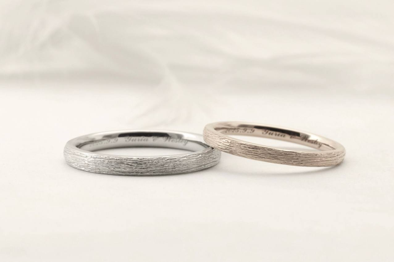 手作りの木目模様がオシャレで癒される結婚指輪 静岡県冨士宮市 Y&W様